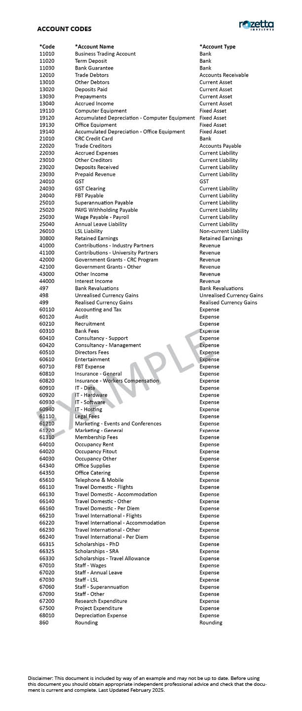 An example of CRC Account Codes can be found below: